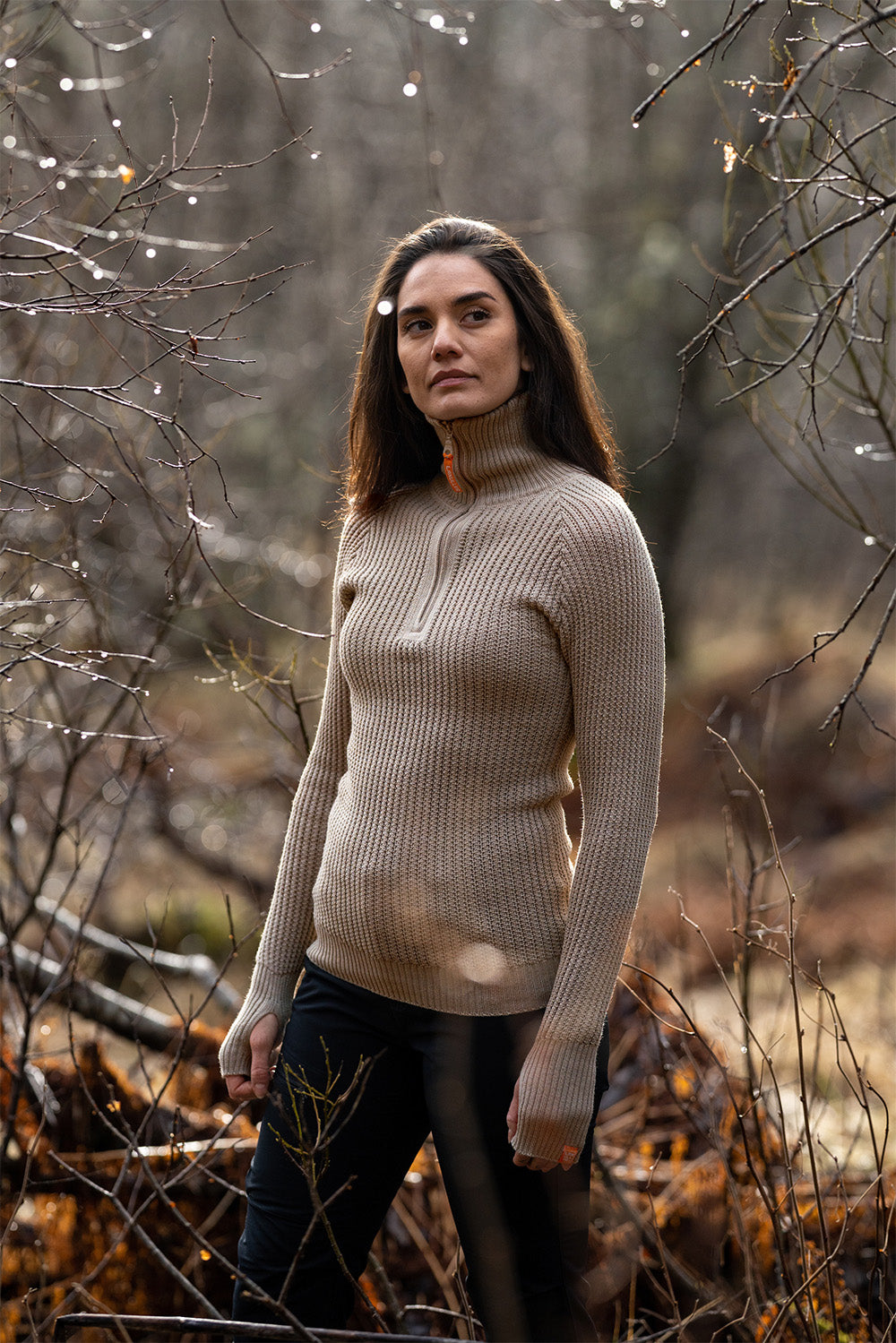 En myk og behagelig ullgenser strikket av verdens fineste merinoull. 100% sporbar, 100% ull. Vår helt spesielle strikkemetode i kombinasjon med den beste ull kvaliteten gjør at plagget kjennes lett og mykt på kroppen. Praktisk 1/2-zip i front gir mulighet for ekstra ventilering.