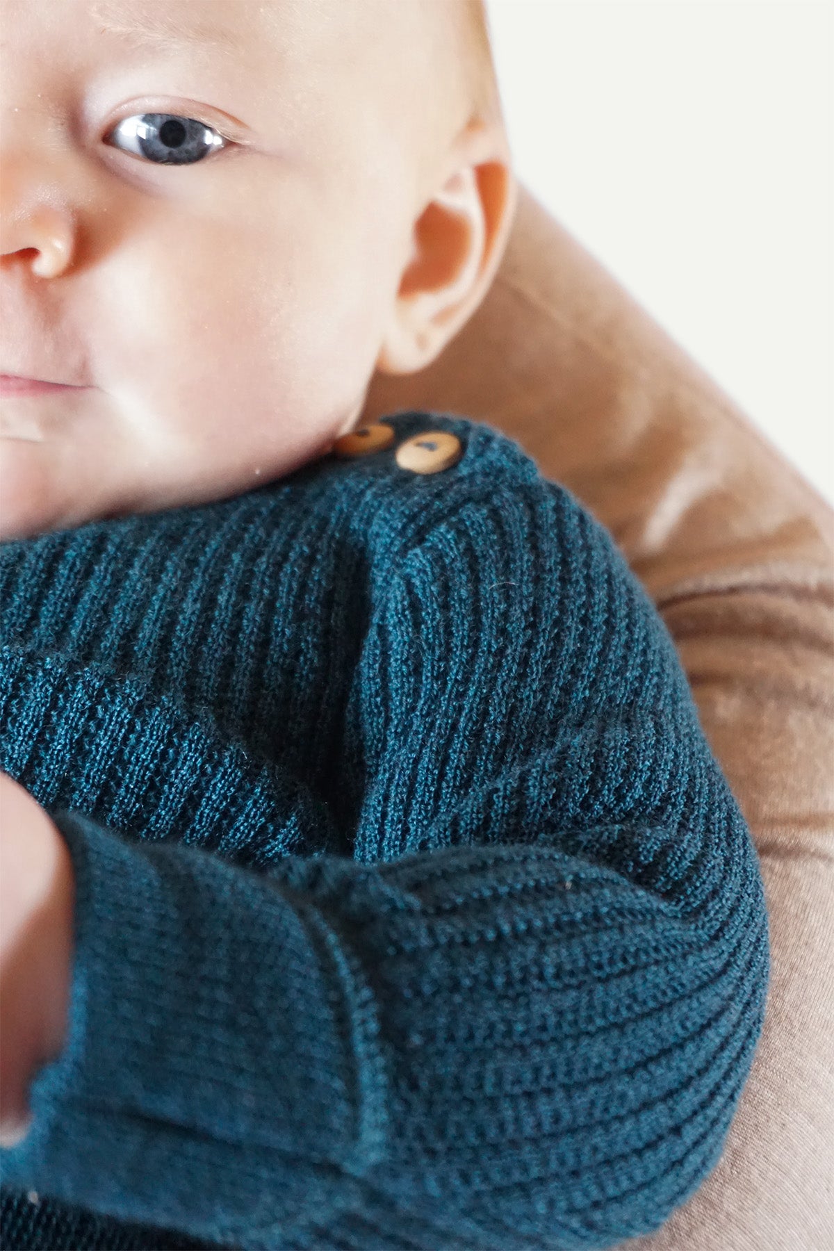 A light, soft and comfortable bodysuit. Knitted from the world's finest merino wool. Here you can be sure that your baby is always just right and warm.