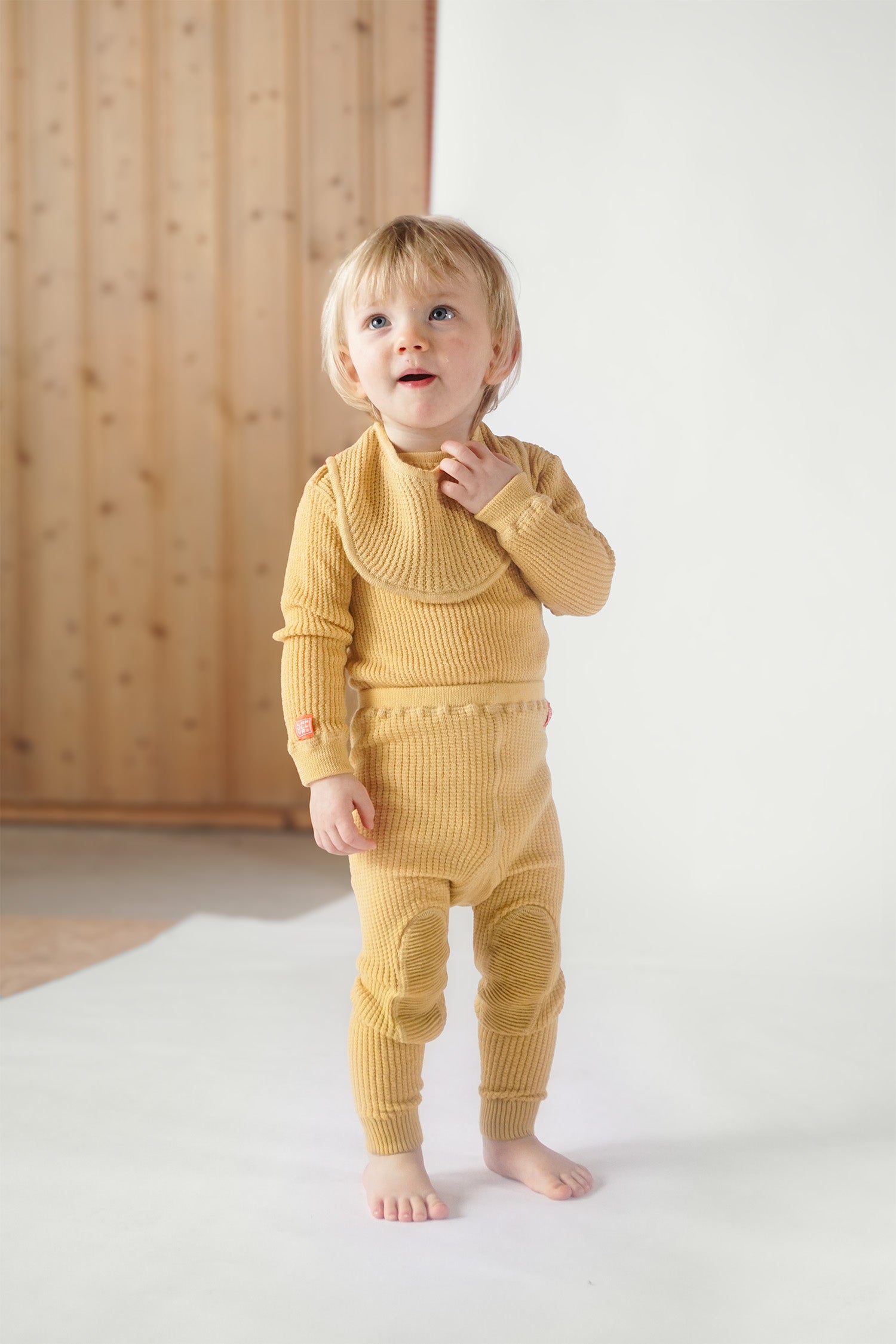 Soft bib made of 100% merino wool. Keeps baby warm, even when the wool bib is wet. Can be used from newborn to 1.5 years.