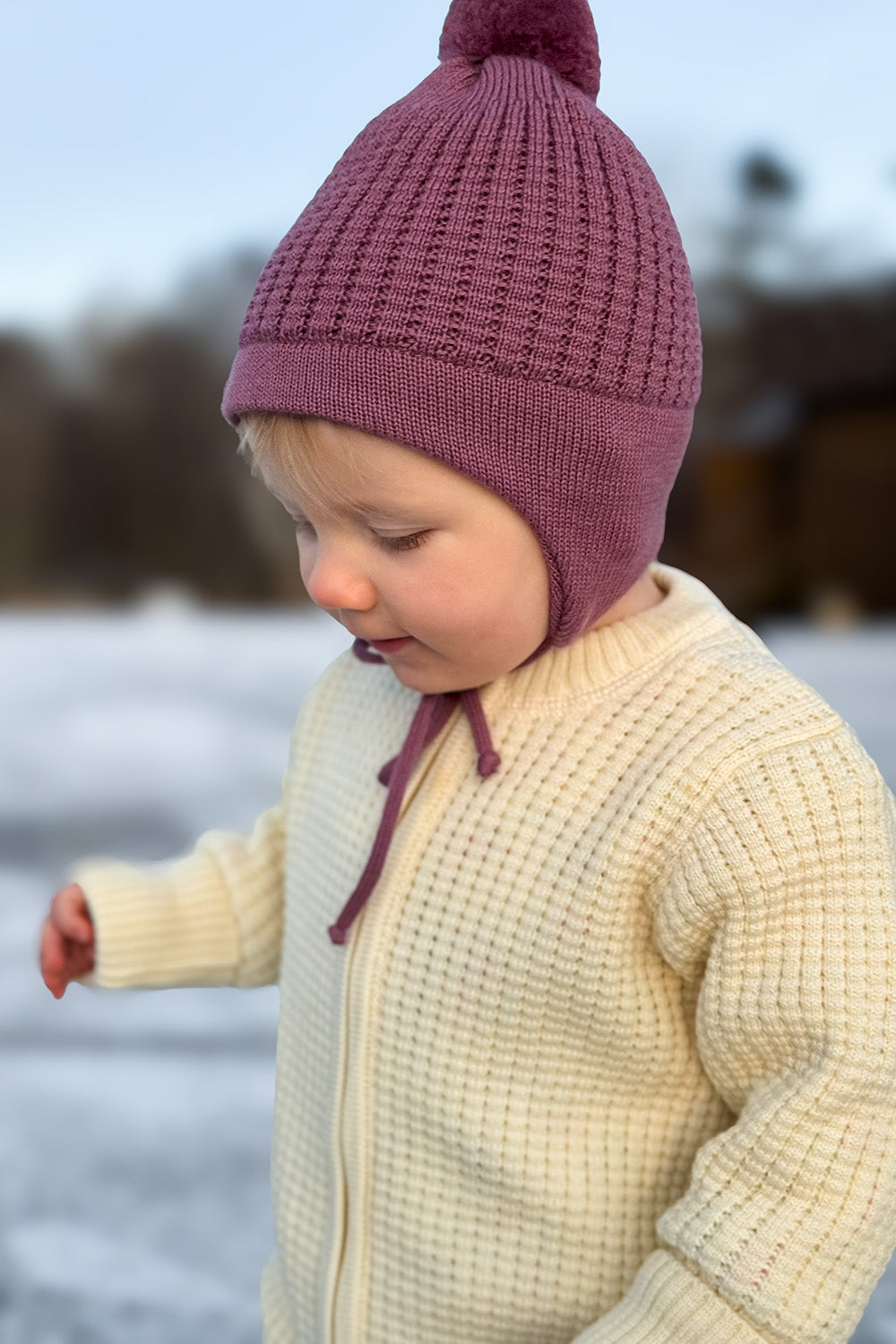 • When you want to be sure that the baby is just the right temperature - in the pram, the car or at home - this baby suit is perfect. The suit is knitted from the world's finest wool, 100% merino wool from Nativa. You will discover that our airy knitting method gives the baby a pleasant warm experience. Practical as a middle layer with Havbris body and tights inside, but the soft wool means it can be used directly on the skin. What makes the Lanullva experience so different is primarily our own, airy knitting method. Advanced tests show that this way of knitting provides a completely unique insulating ability. More air provides more insulation and better ventilation. Surplus heat and sweat are easily transported out of the body and through the garment - so that the baby stays dry at all times, and just right warm. This product has full traceability - all the way from the farm to us.
