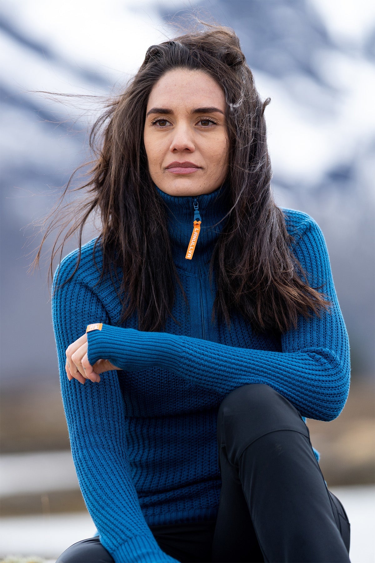 Lanullva Hustadvika 2.0 Wool sweater Half Zip, Atlantic blue