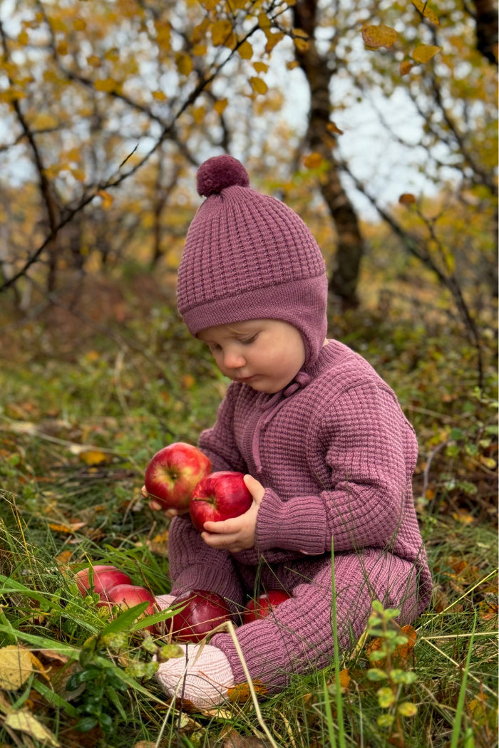 When you want to be sure that your baby is just right – in the stroller, car or at home – then this baby suit is perfect. The suit is knitted from the world's finest wool, 100% merino wool from Nativa. You will discover that our airy knitting method gives your baby a comfortable warm experience. Practical as a mid-layer with the Havbris body and tights inside, but the soft wool means that it can be worn directly on the skin. What makes the Lanullva experience so different is first and foremost our own, airy knitting method. Advanced tests show that this way of knitting provides a completely unique insulating ability. More air gives more insulation and better ventilation. Excess heat and sweat are easily transported out of the body and through the garment – so that your baby always stays dry and just right. This product has full traceability - all the way from the farm to us.