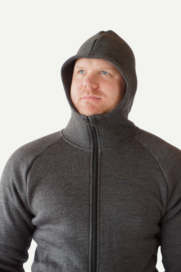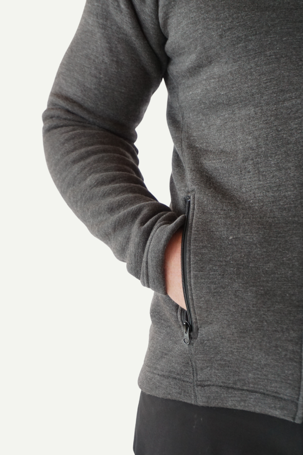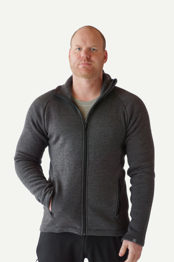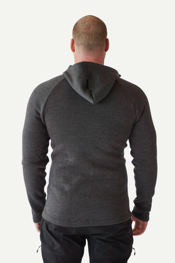 Soft and comfortable hooded jacket in 60% merino wool and 40% tencel with teddy lining on the inside. Perfect as an outer layer for bonfires or as an extra layer on cold days.Â