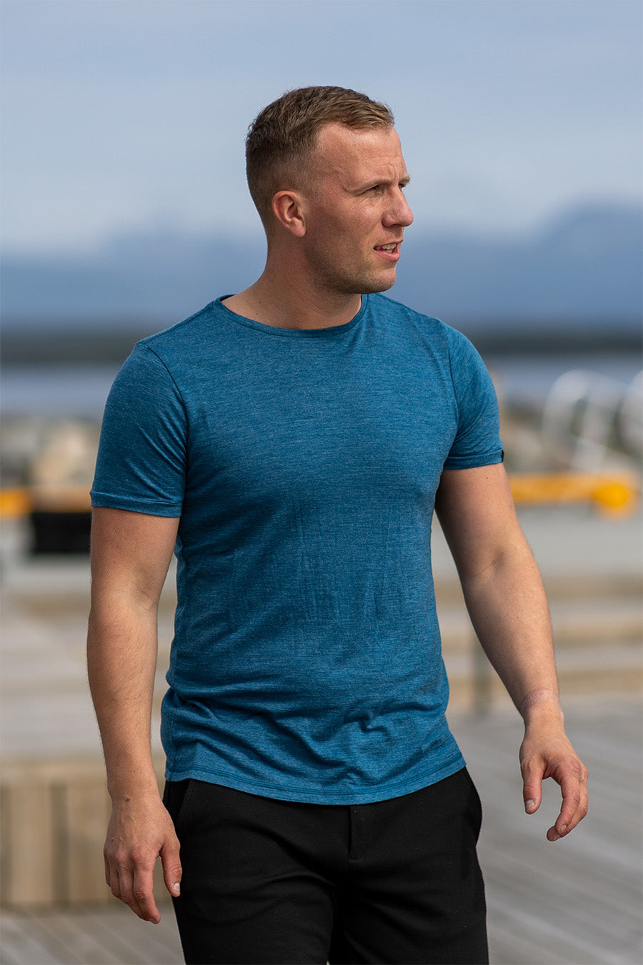 Wool in the summer has some absolutely unbeatable properties that trump everything else - even when the plus degrees are in full swing. When the temperature changes from warm to cold and cold to warm throughout the day and evening, it can be difficult to find clothes that work, but fortunately there is no problem for Lanullva's unique knitting method, which is created to be temperature-regulating. The men's wool t-shirt is a sure winner in the summer wool wardrobe