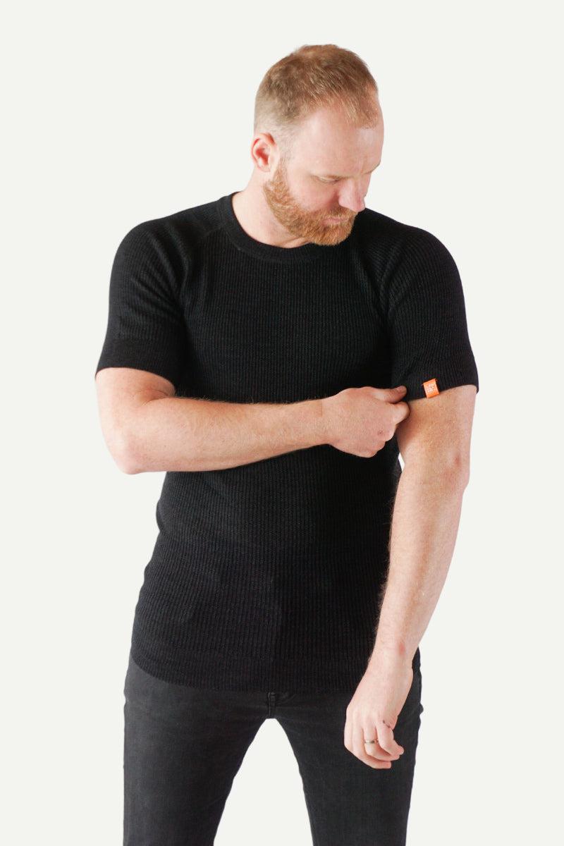 A light, soft and comfortable t-shirt knitted from the world's finest wool, 100% merino wool from Nativa. Even with a thinner t-shirt, you'll find that our airy knitting method provides a comfortable temperature. The T-shirt is perfect for training outdoors. What makes the Lanullva experience so different is primarily our own, airy knitting method. Advanced tests show that this way of knitting provides a completely unique insulating ability. More air provides more insulation and better ventilation. Excess heat and sweat are easily transported out of the body and through the garment - so that you always stay dry, and just the right amount of warm. We recommend that you order your usual size - the t-shirt should fit close to the body so that temperature regulation is optimised.