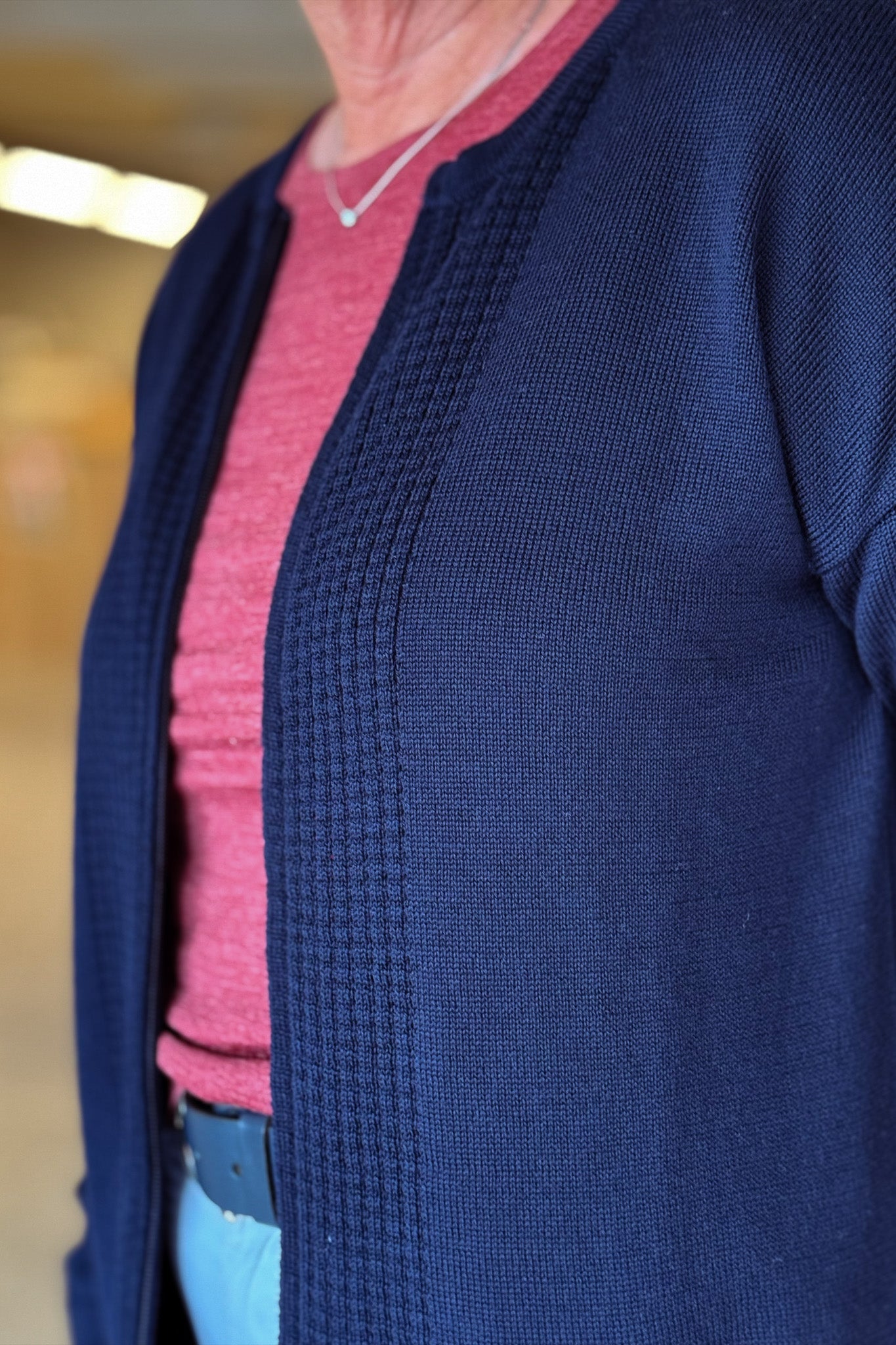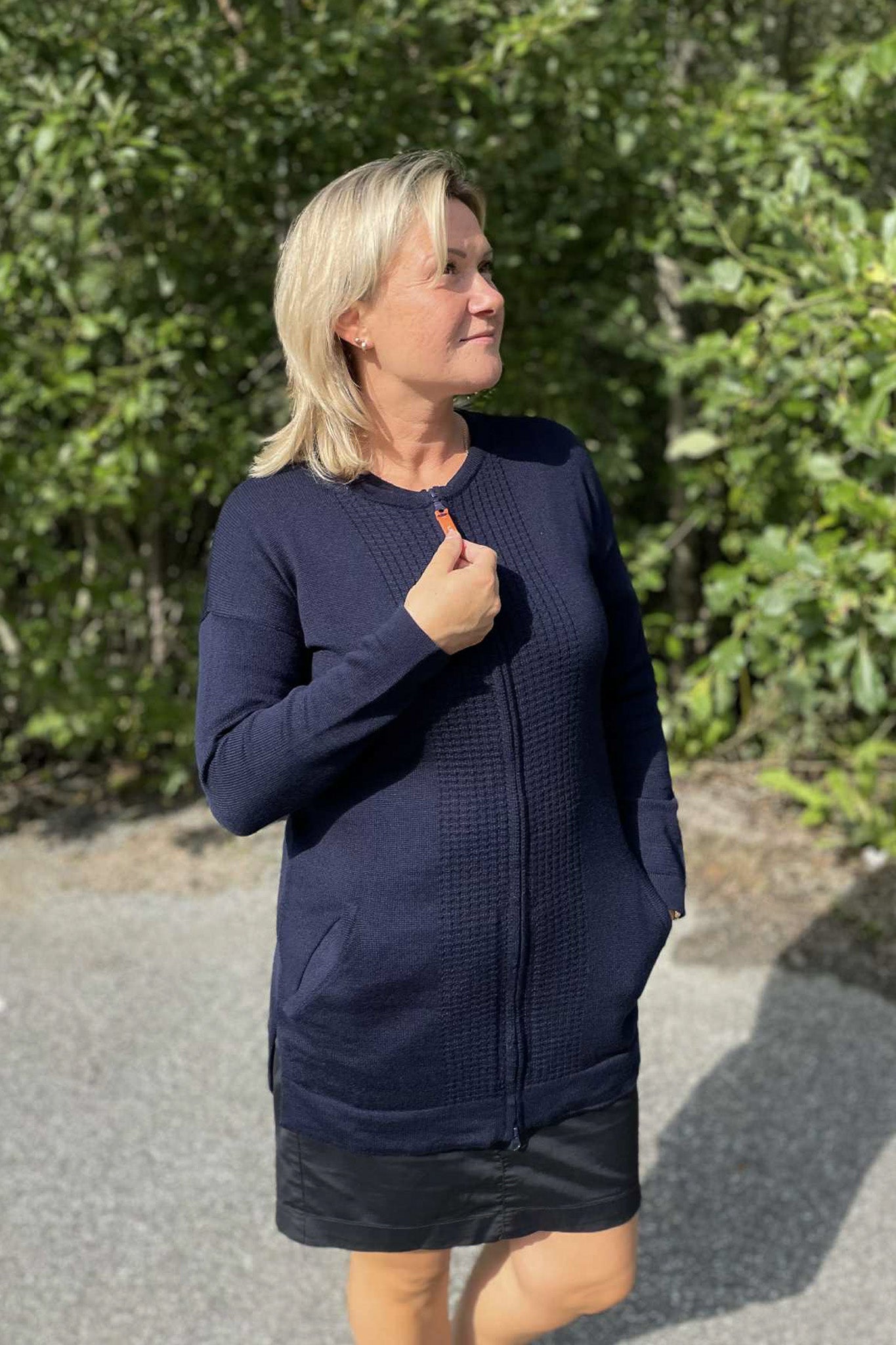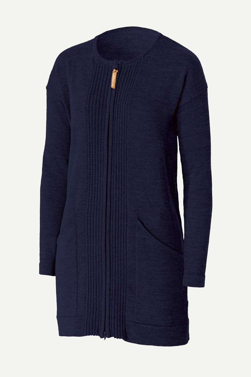 Classic Wool Knitted Jacket Women Zip, Midnight Blue